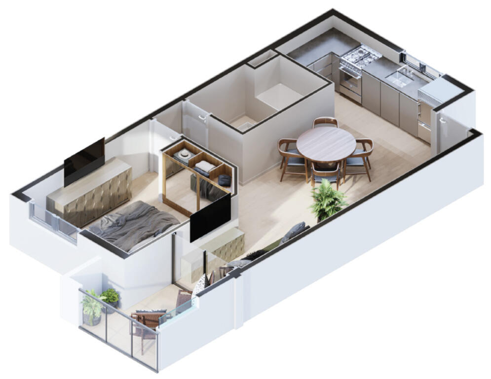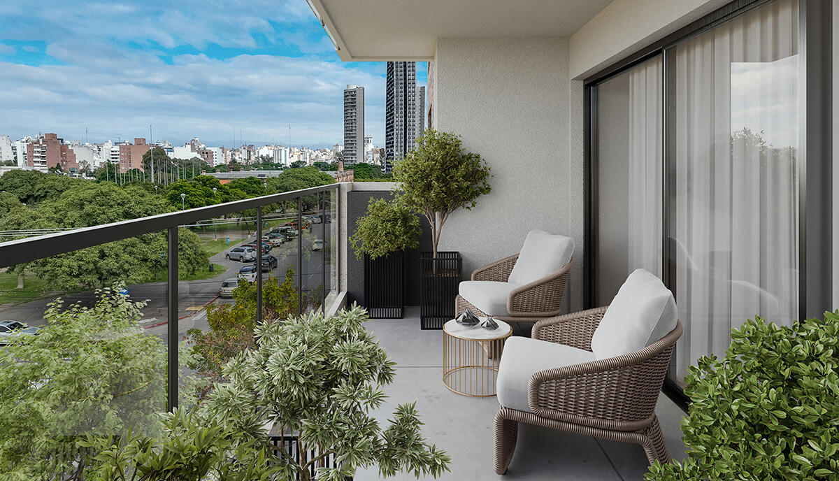Departamento de 1 dormitorio con pileta, balcón y WiFi. A pasos de Paseo Libertad y Clínica Reina Fabiola. Disponible desde junio 2026.